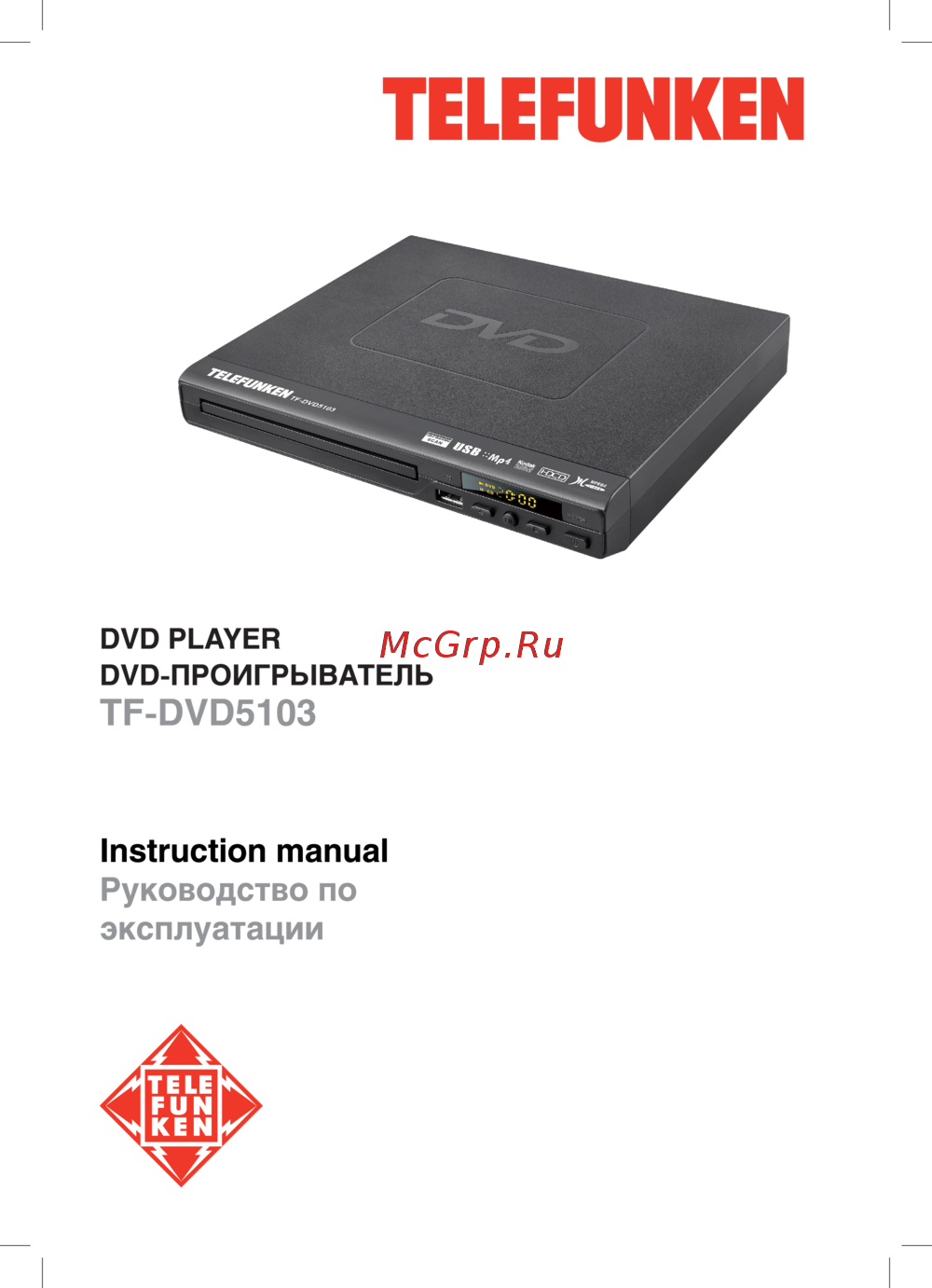 TELEFUNKEN DVD PLAYER DVD ПРОИГРЫВАТЕЛЬ TF DVD5103 Instruction manual Руководство no эксплуатации