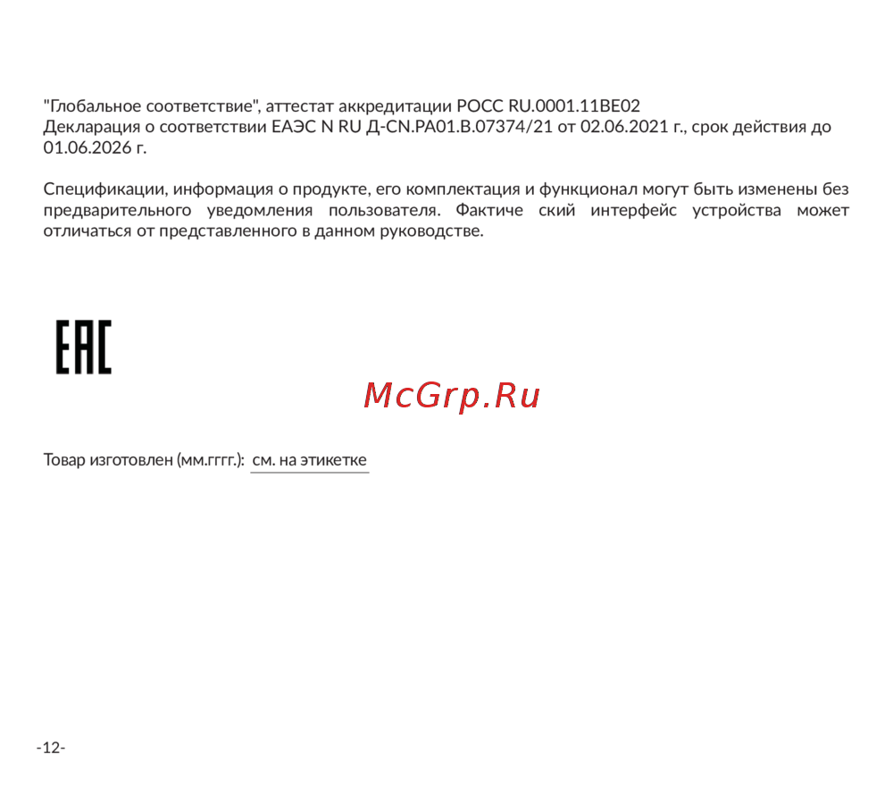 - Импортер ооо дихаус адрес россия 105066 москва ул доброслободская д 5 стр 1 комната 10 претензии принимаются по адресу россия 111250 г москва пр д завода серп и молот д к страна изготовитель китай фирма изготовитель шэньчжэнь женченг текнолоджи 3 эф билдинг си номер 2 роуд 1 шенгксю индастриал эриа бантьян стрит лонггэнг дистрикт шэньчжэнь китай срок службы 2 года срок гарантии 1 год с момента продажи продукт соответствует требованиям тр тс 020 2011 и тр еаэс 037 2016 сертификат соответствия еаэс ru с cn ве02 в 3883 21 от 02 6 021 г срок действия до 01 6 026 выдан органом по сертификации общество о ограниченной ответственностью p.13