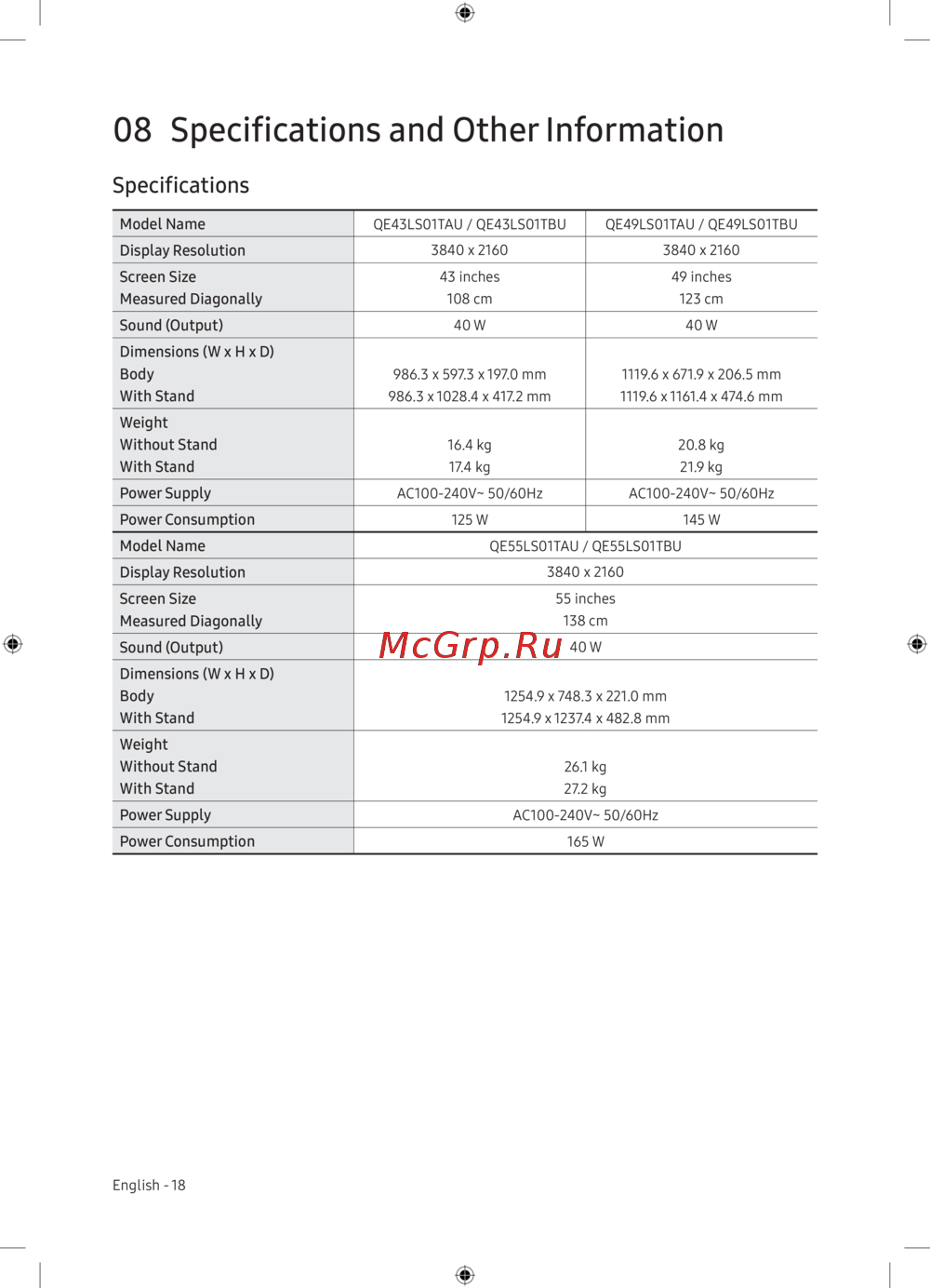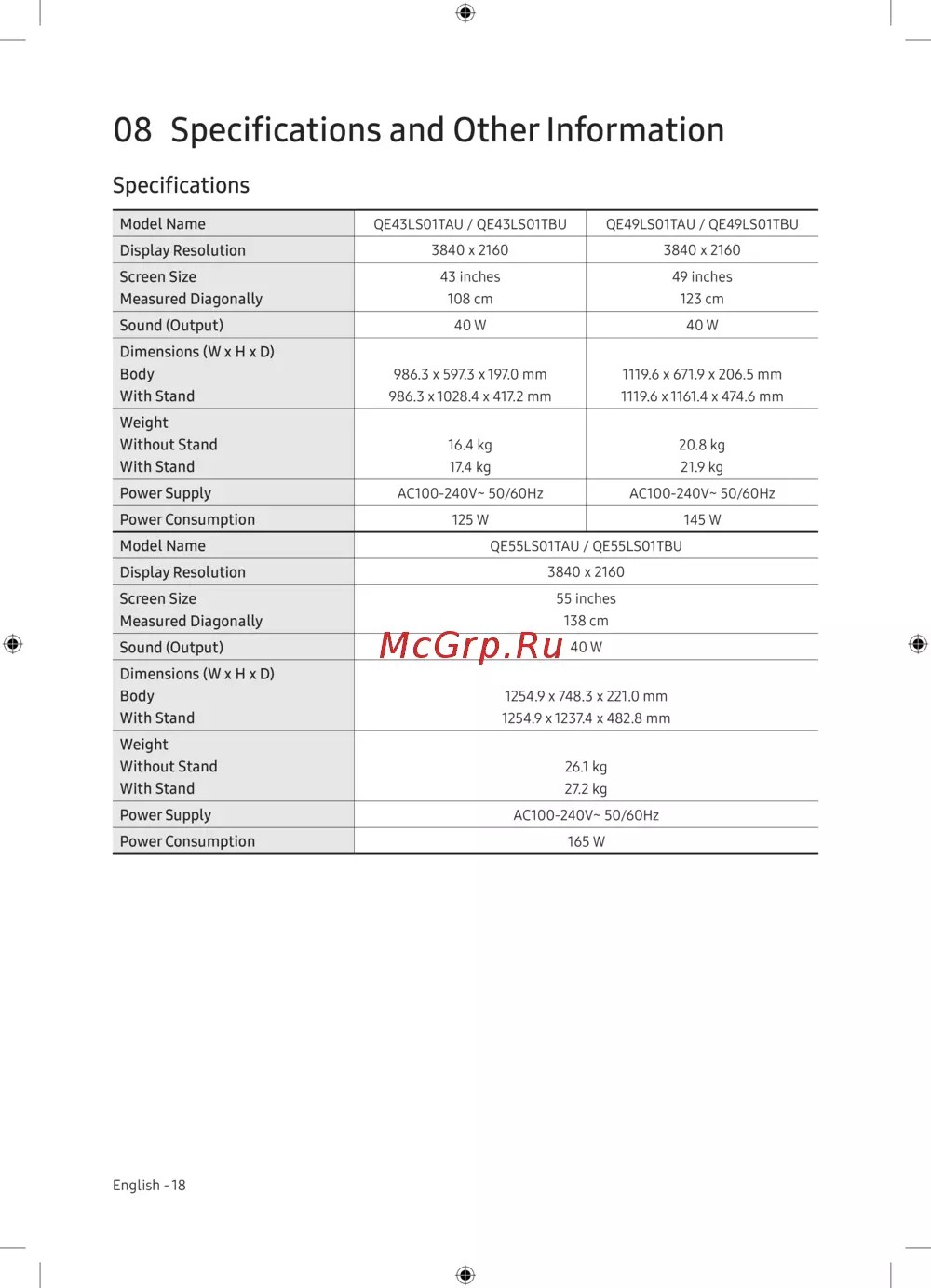 Model Name QE43LS01TAU / QE43LS01TBU QE49LS01TAU / QE49LS01TBU