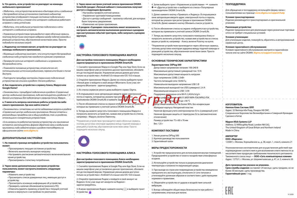 ![Digma DiPlug 500 EU (TY1910) Инструкция по эксплуатации онлайн [2/2] 642755](/views2/1855026/page2/bg2.png)