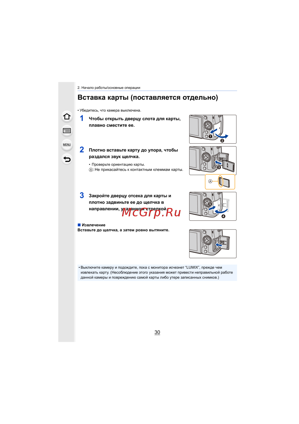 Panasonic Lumix G DC-G90MEE-K [30/345] Вставка карты поставляется отдельно