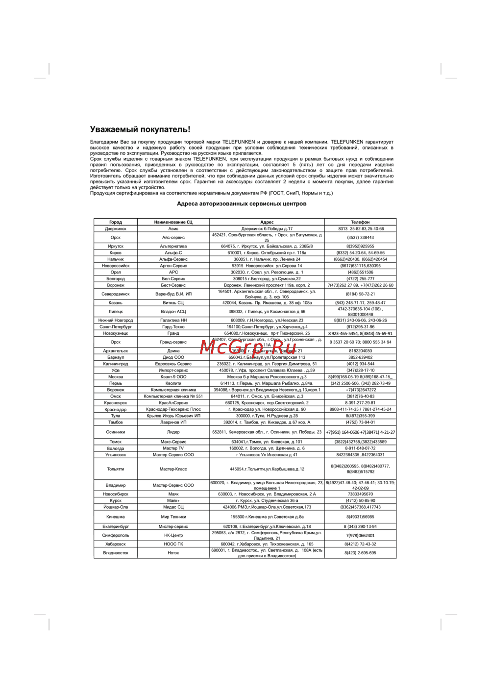 Telefunken TF-LED42S14T2S (Яндекс)Инструкция по эксплуатации -
