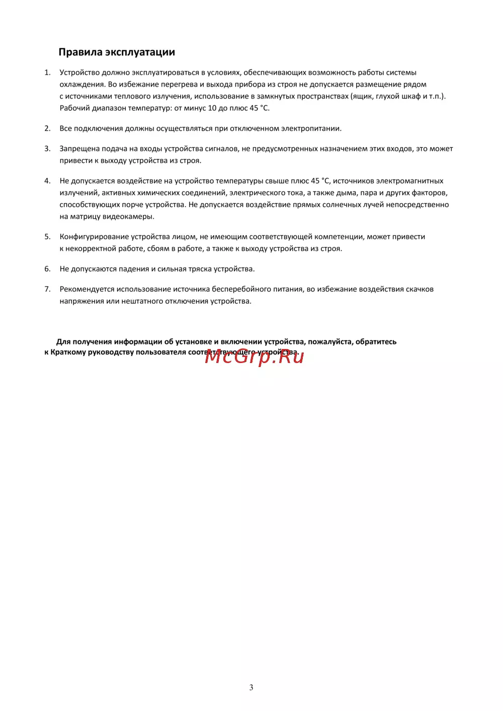4. Не допускается воздействие на устройство температуры свыше плюс 45 °C, источников электромагнитных