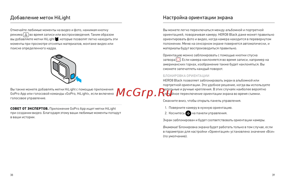GoPro App или голосовой команды «GoPro, HiLight», если включено