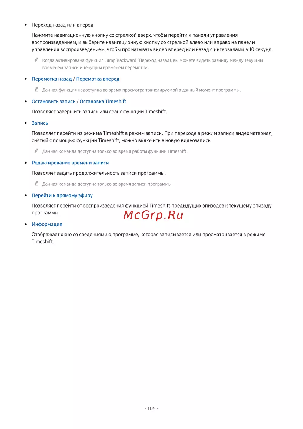 Данная функция недоступна во время просмотра транслируемой в данный момент программы.