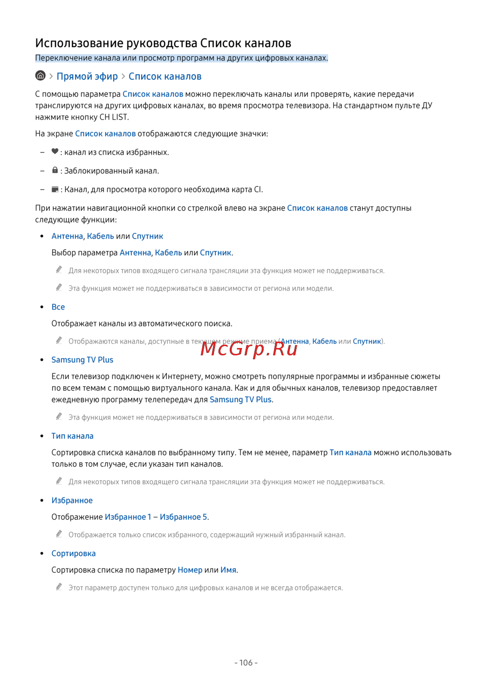 - Использование руководства список каналов p.254