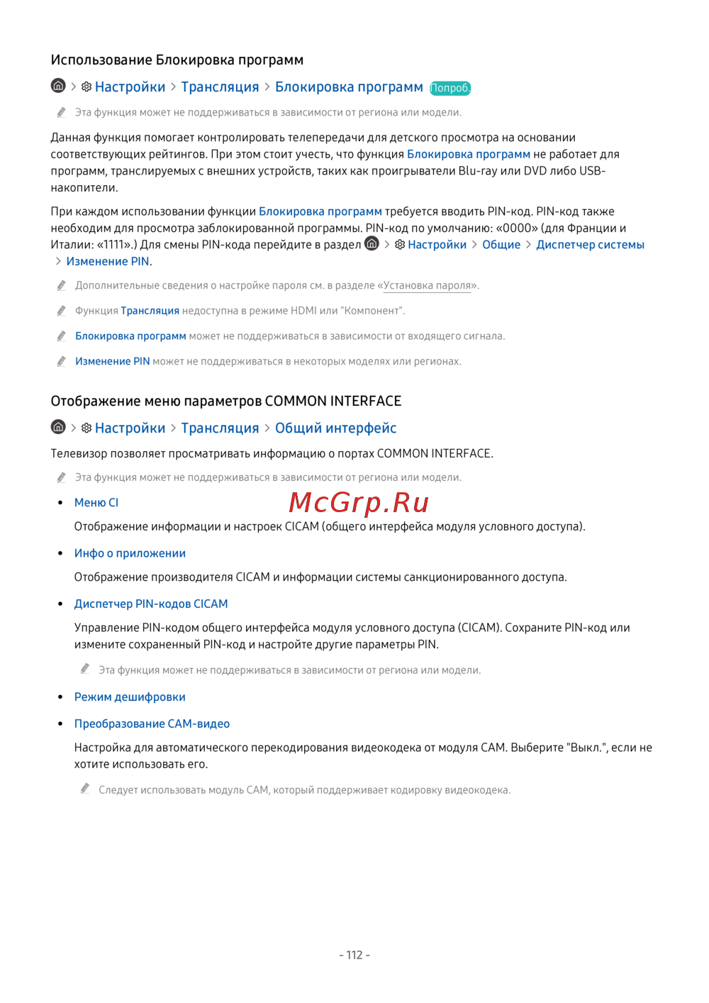 Узнайте, как настроить блокировку программ для детского просмотра и управлять PIN-кодом. Получите информацию о функциях и ограничениях в зависимости от региона.