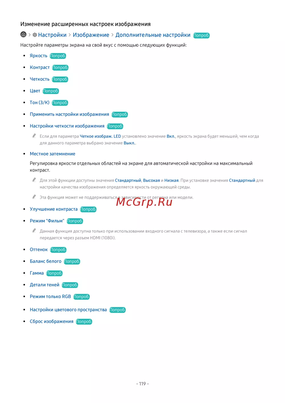 ![Samsung Neo QLED 4K Smart TV QE43QN90BAU [119/264] Настройки изображение дополнительные настройк](/views2/1815740/page119/bg77.png)