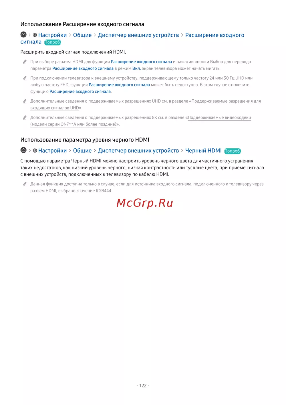 Samsung Neo QLED 4K Smart TV QE65QN87BAU — настройки расширения входного сигнала и уровня черного HDMI [122/264]