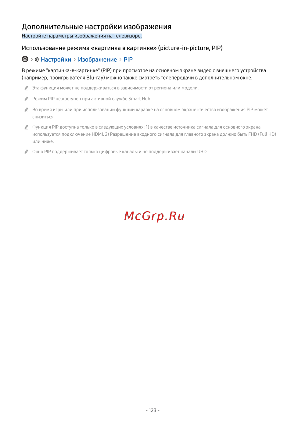 Функция PIP доступна только в следующих условиях: 1) в качестве источника сигнала для основного экрана