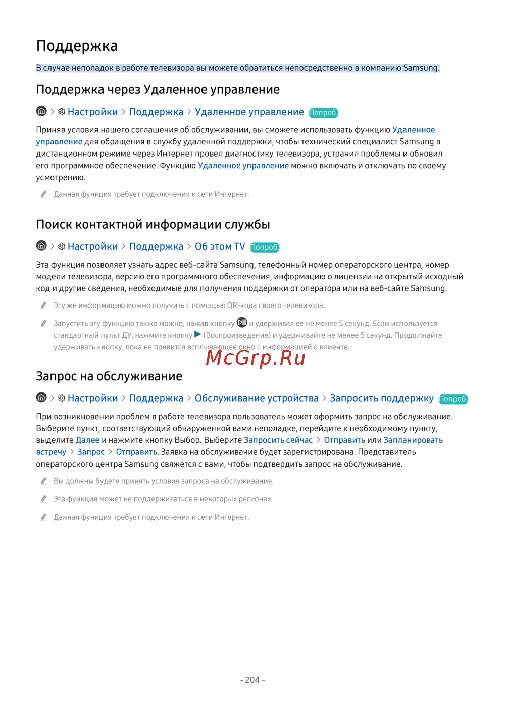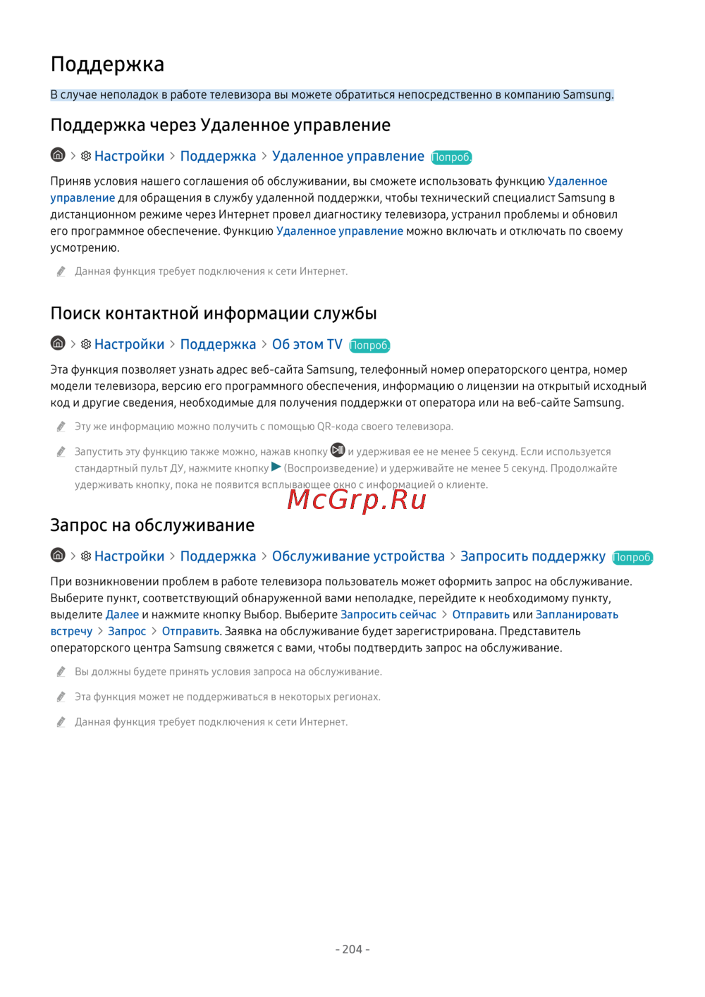 - Настройки поддержка об этом t p.204