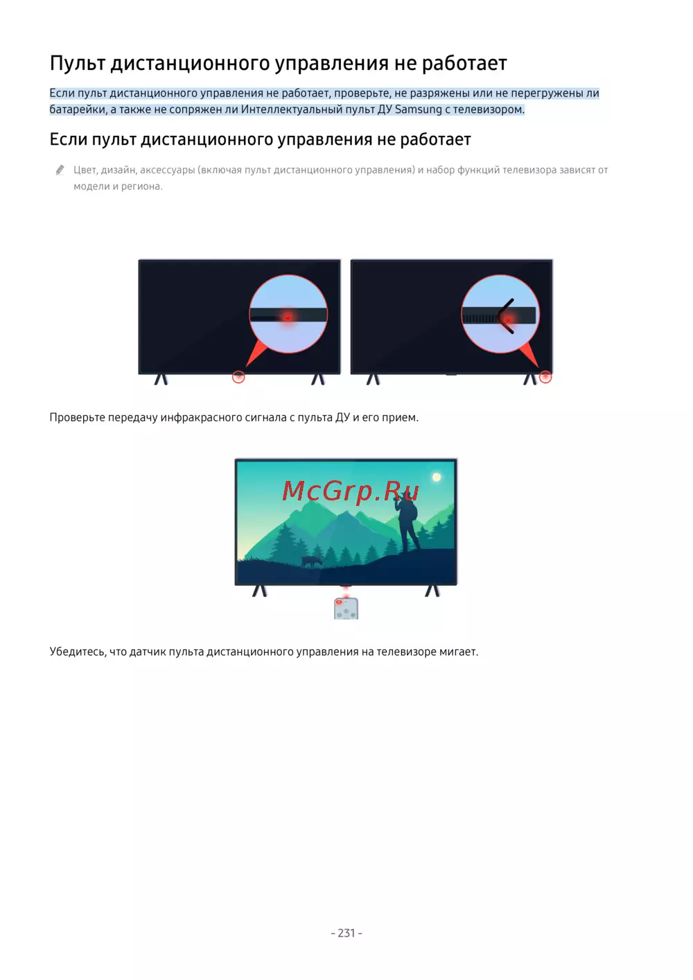 - Пульт дистанционного управления не работает p.231