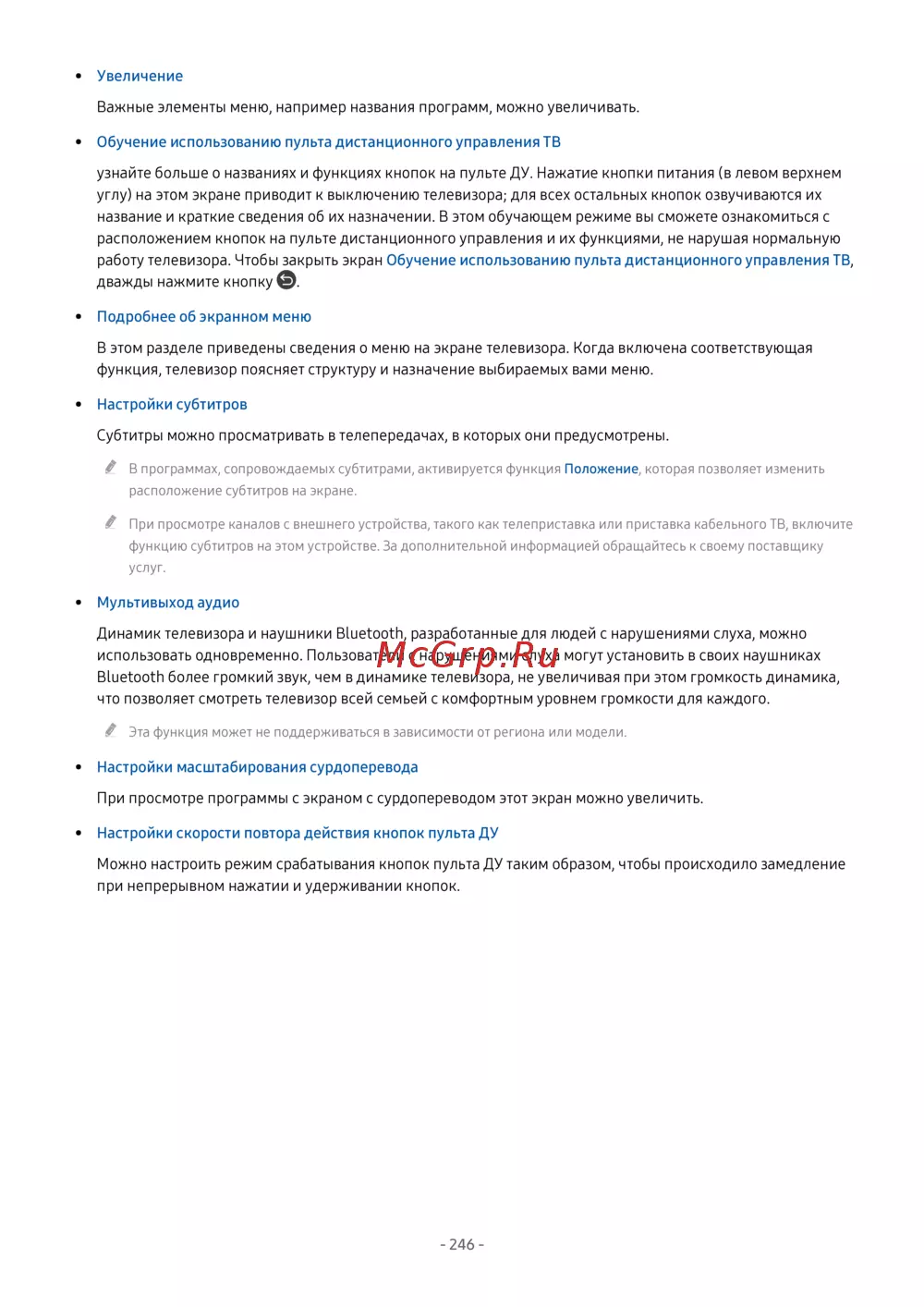 - Работа с телевизором с включенной функцией голосовые инструкции p.247