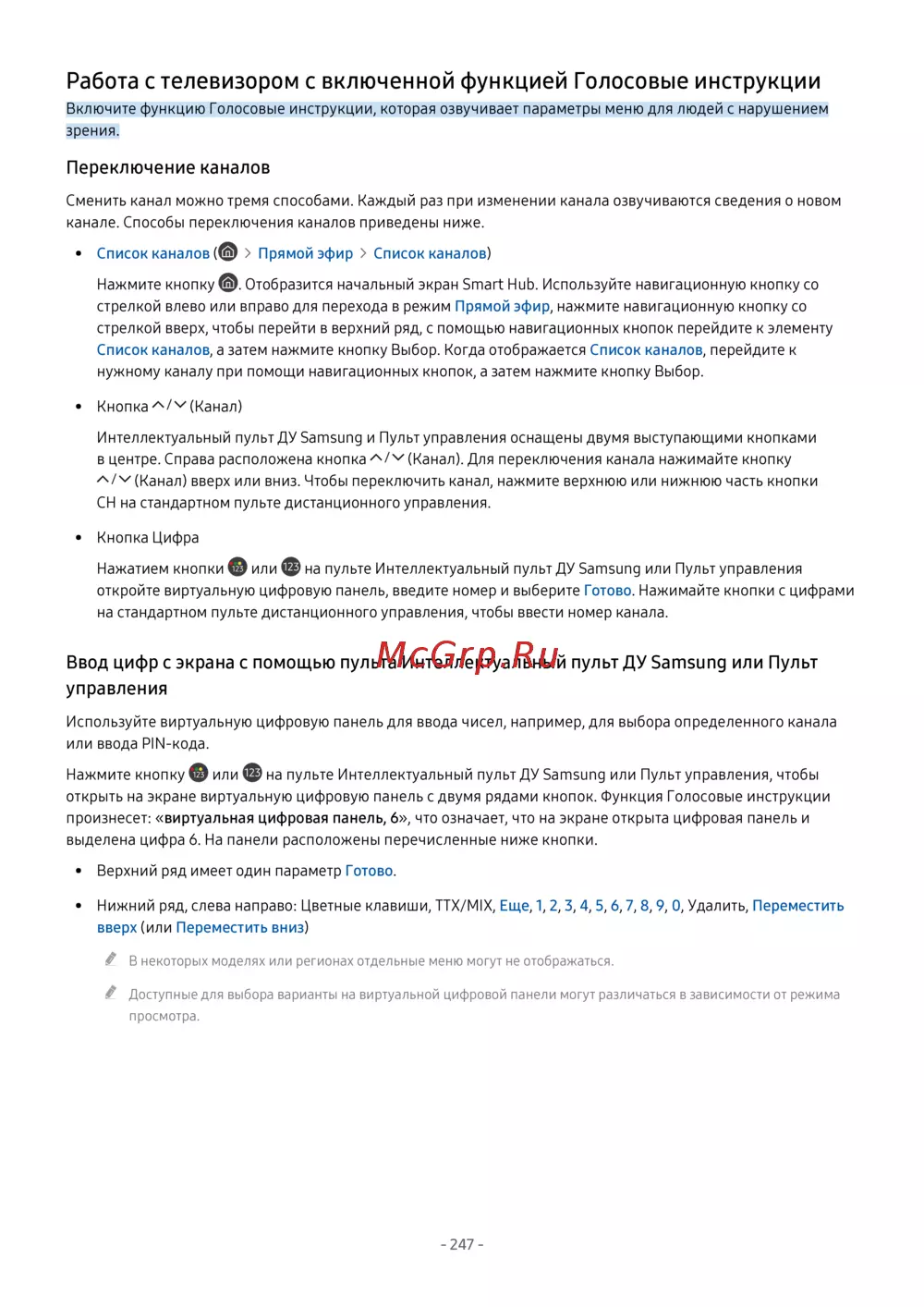 - Работа с телевизором с включенной функцией голосовые инструкции p.247
