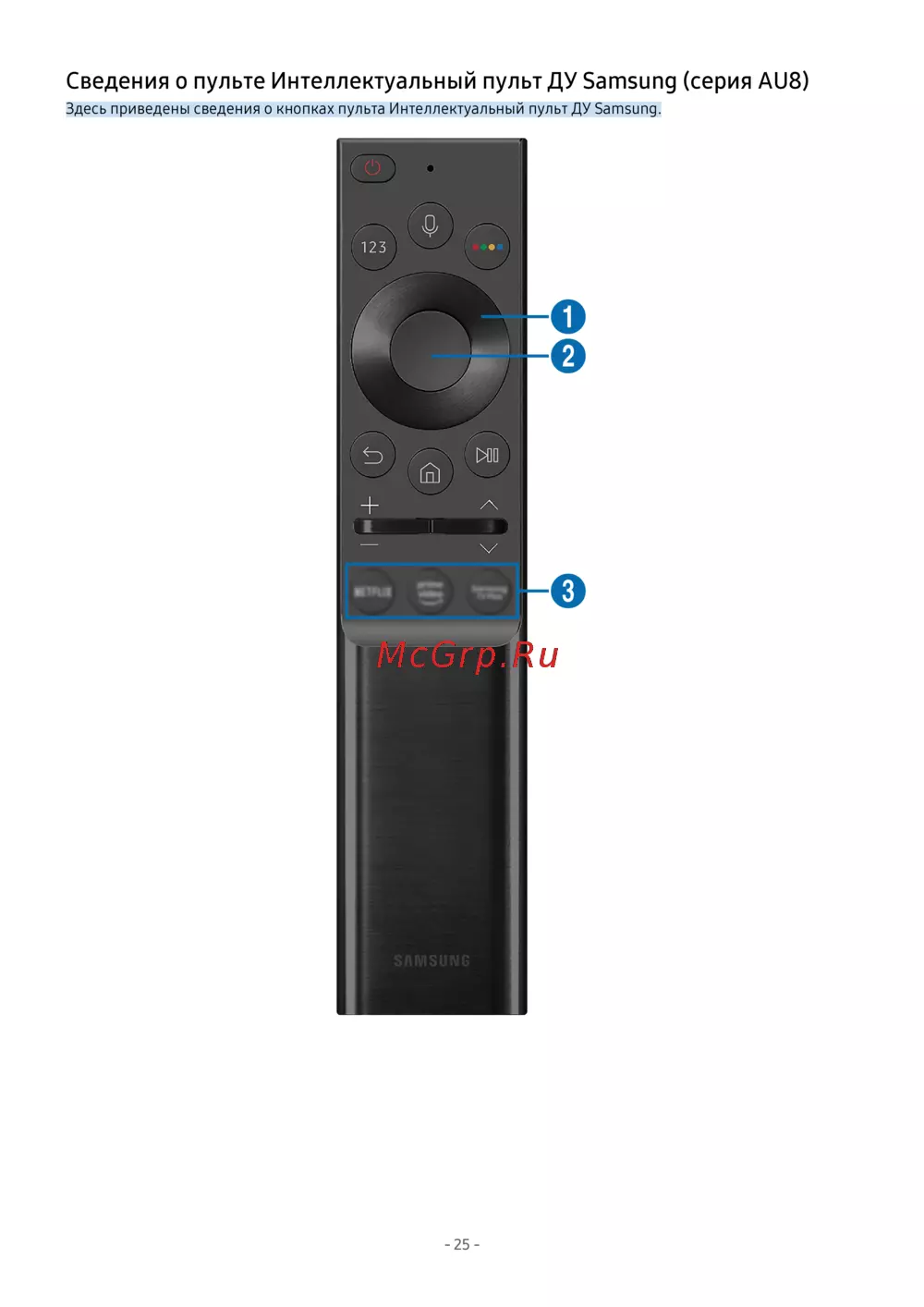 - Сведения о пульте интеллектуальный пульт ду samsung серия au8 p.25