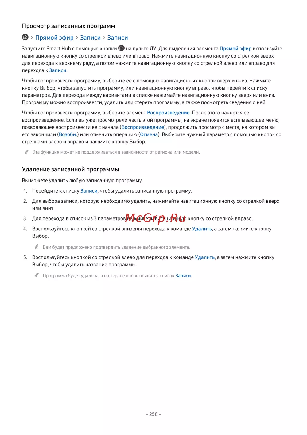 - Удаление записанной программы p.258