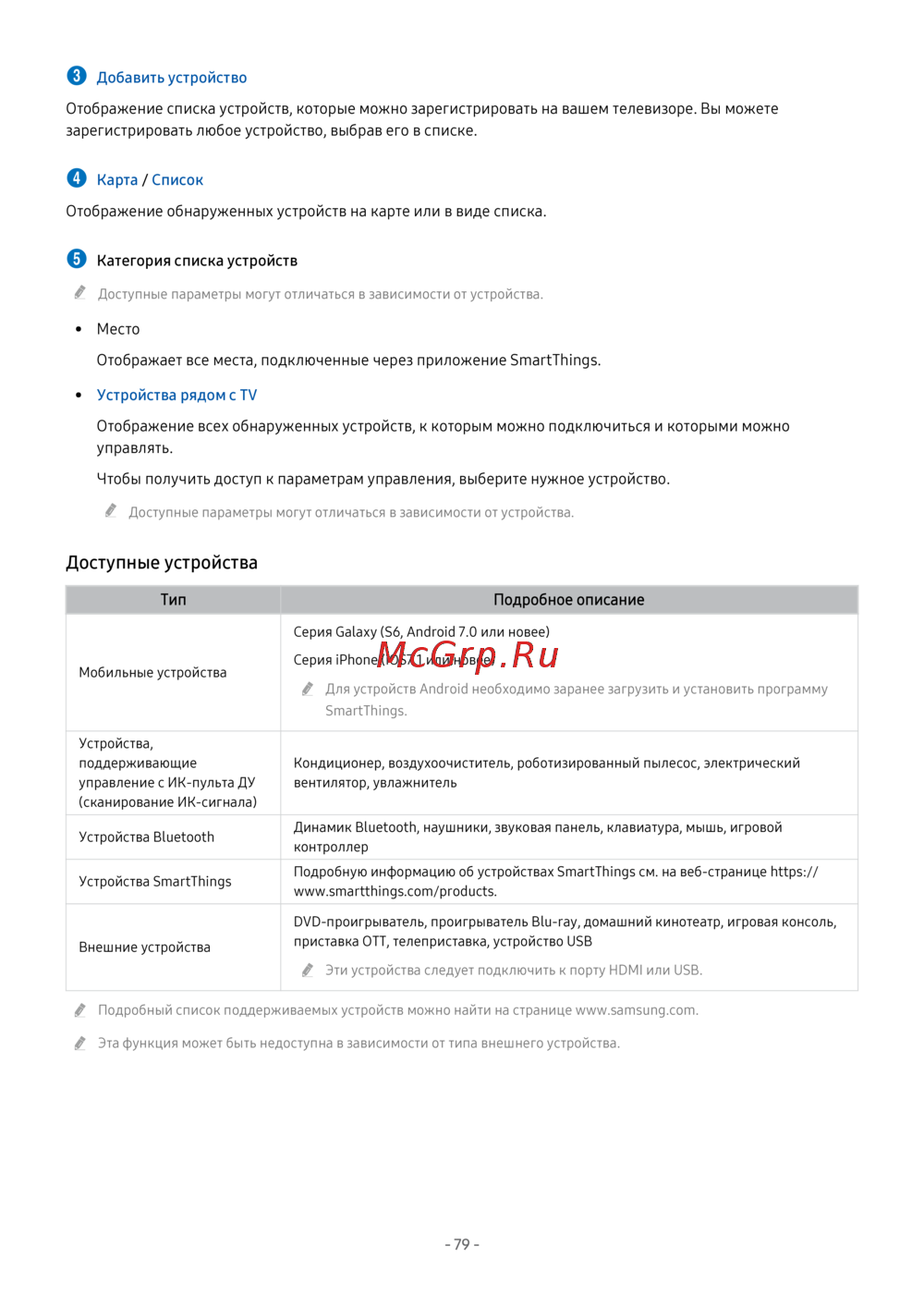 Подробный список поддерживаемых устройств можно найти на странице www.samsung.com.