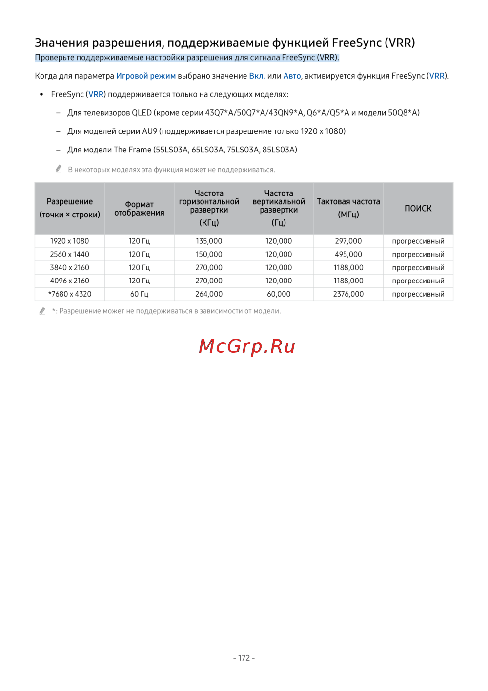 ![Samsung UE43AU7560U [172/264] Значения разрешения поддерживаемые функцией freesync vrr](/views2/1815740/page172/bgac.png)
