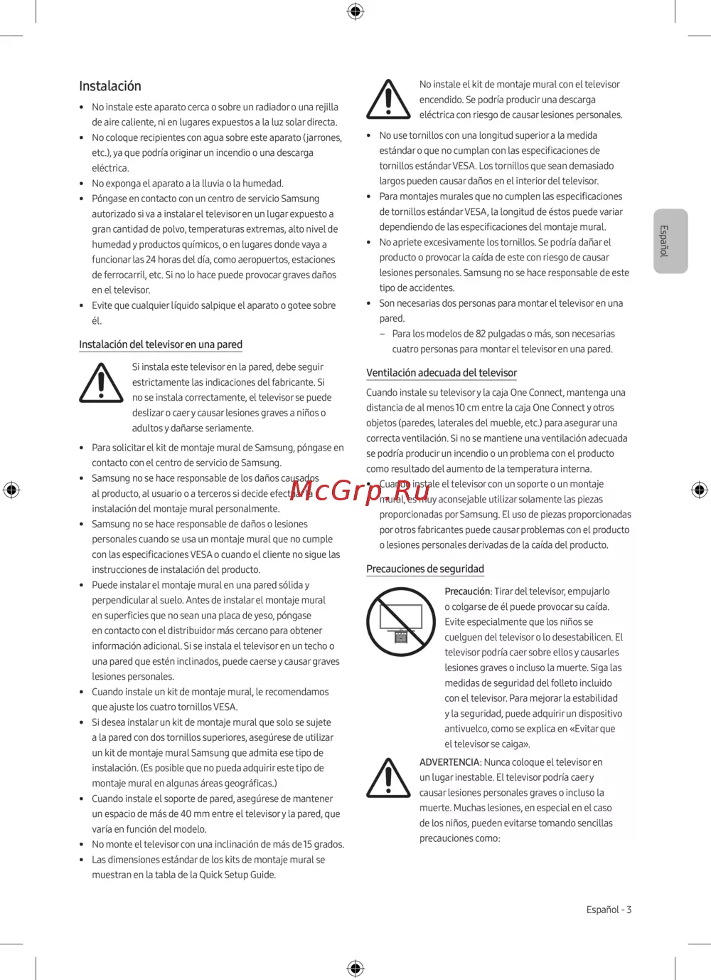 – Para los modelos de 82 pulgadas o más, son necesarias