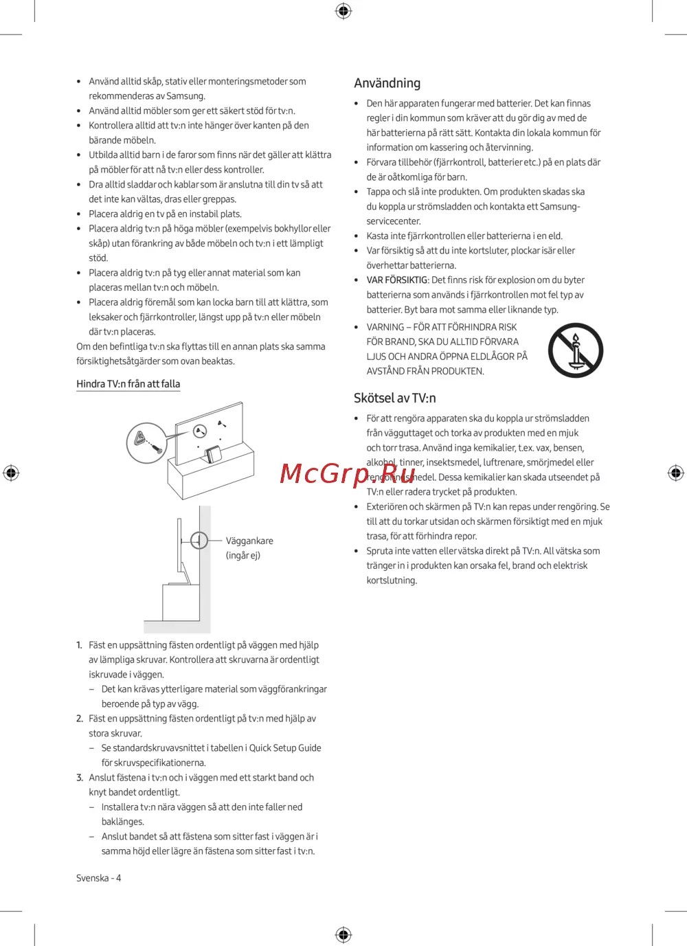 - Preventing the tv from falling p.4