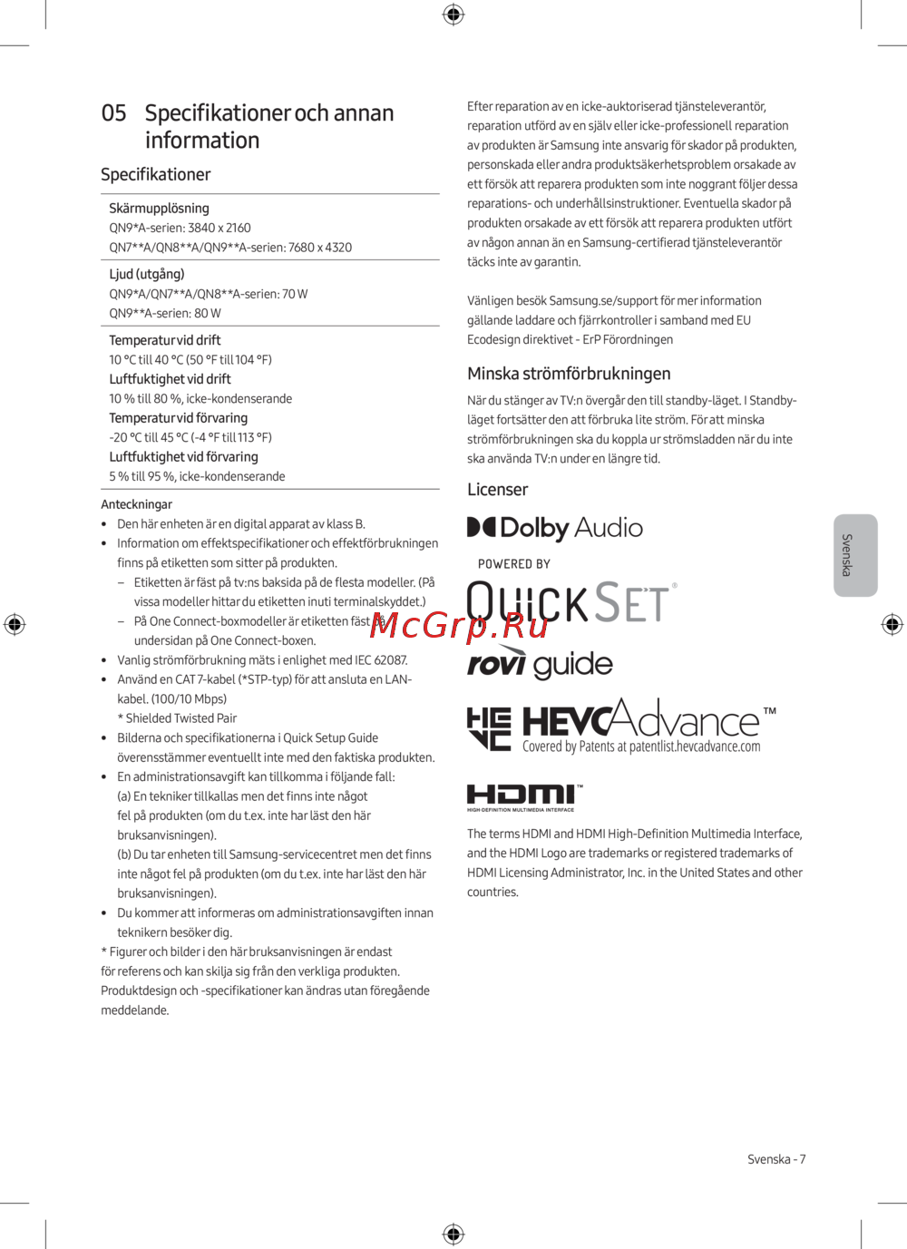 ![Samsung Neo QLED 4K Smart TV QE65QN95BAU [47/76] Temperatur vid förvaring](/views2/1855414/page47/bg2f.png)