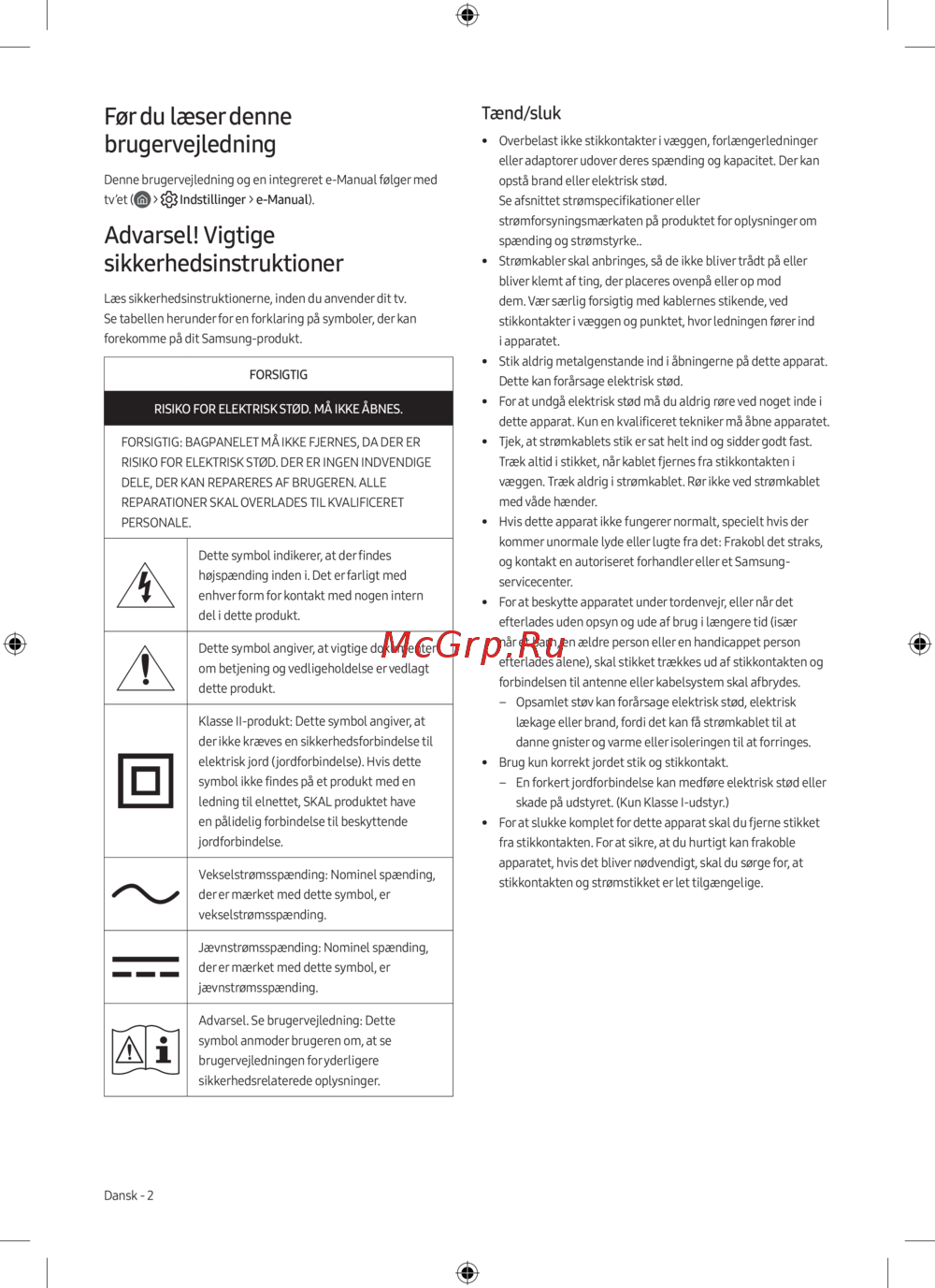 Læs sikkerhedsinstruktionerne, inden du anvender dit tv.