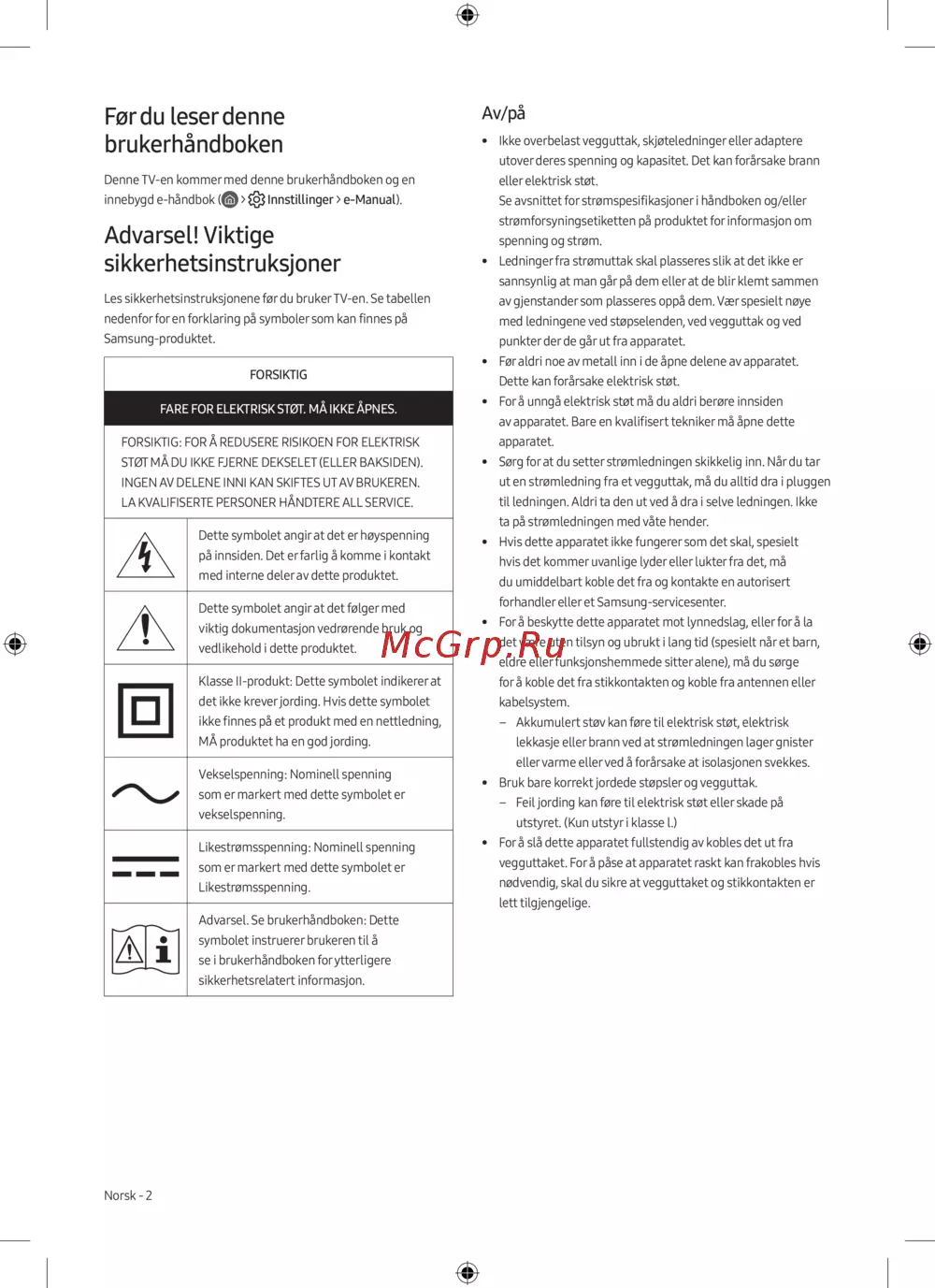 FARE FOR ELEKTRISK STØT. MÅ IKKE ÅPNES.