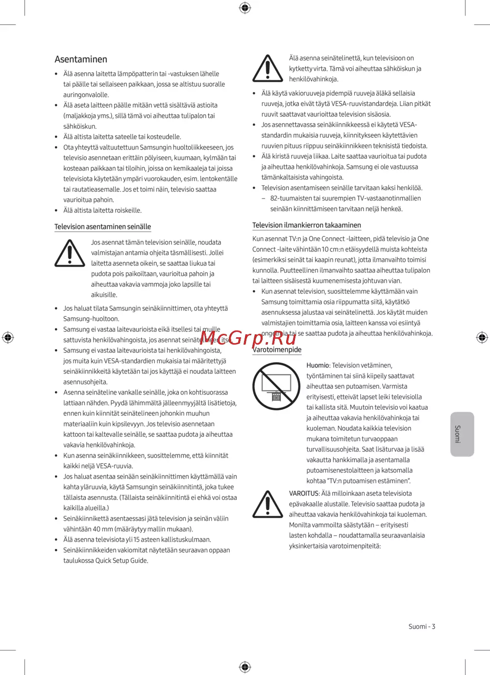 • Television asentamiseen seinälle tarvitaan kaksi henkilöä.