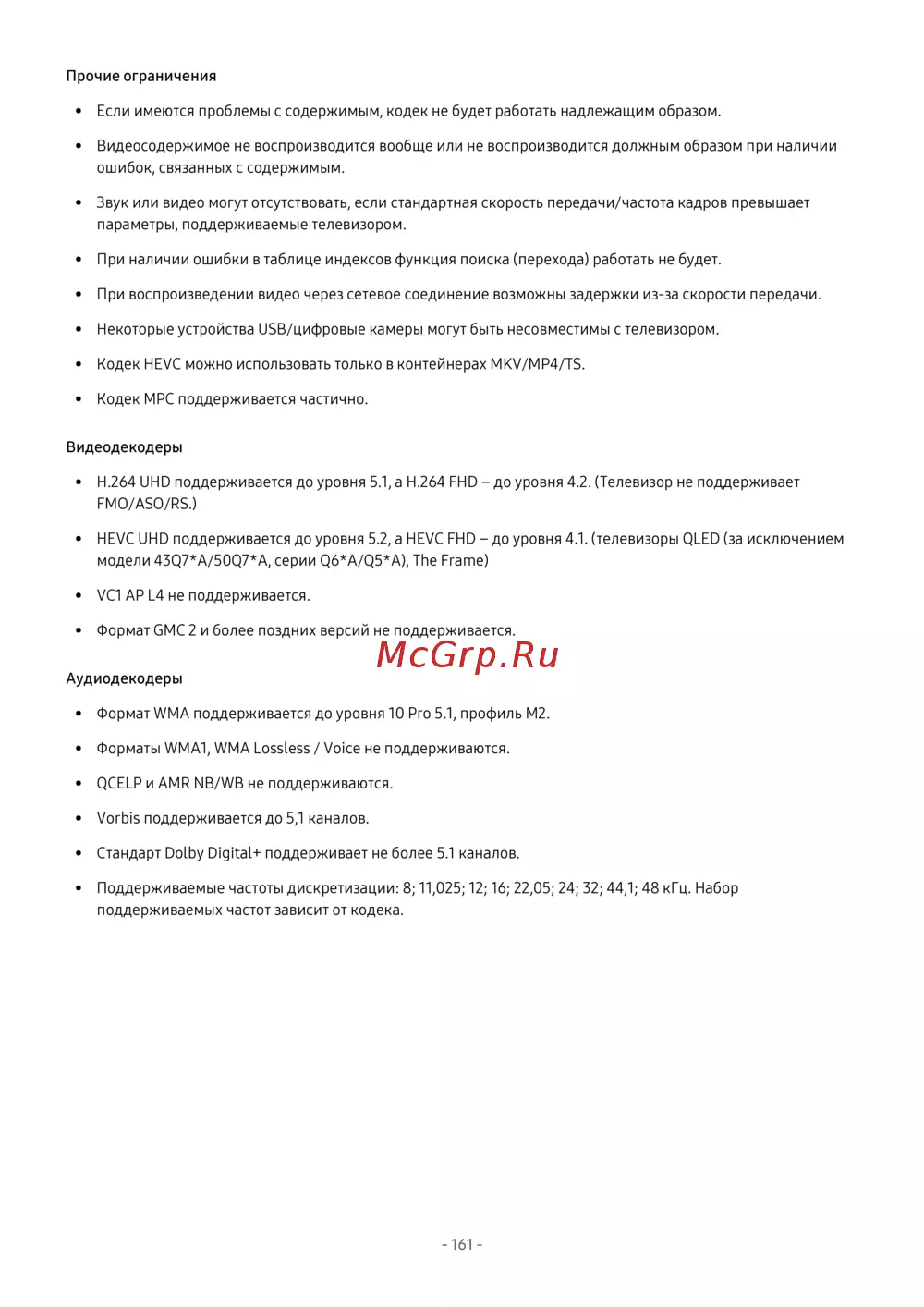 Samsung Neo QLED 4K Smart TV QE75QN85BAU — ограничения и поддержка кодеков для видеосодержимого [161/264]