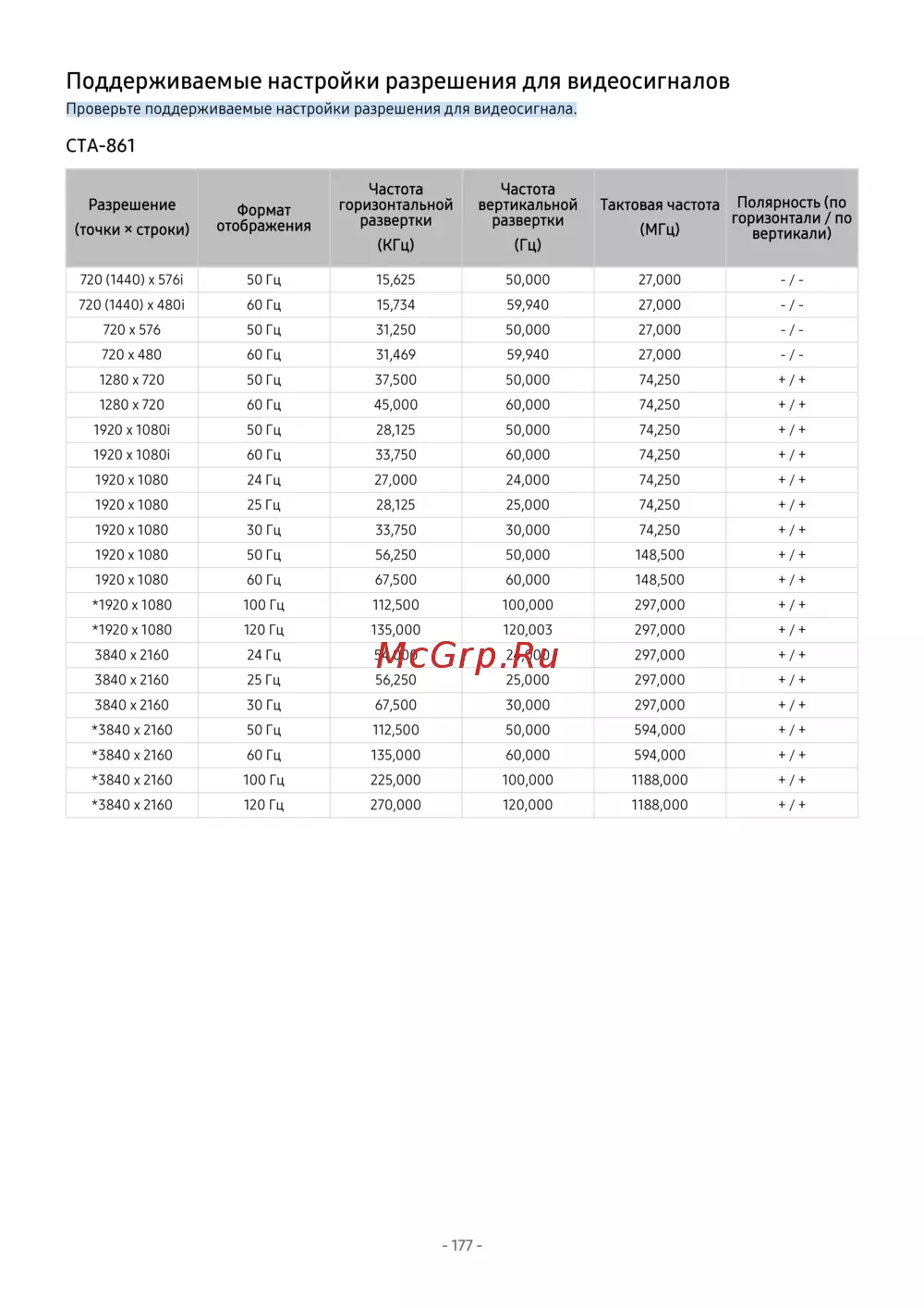 *3840 x 2160 60 Гц 135,000 60,000 594,000 + / +