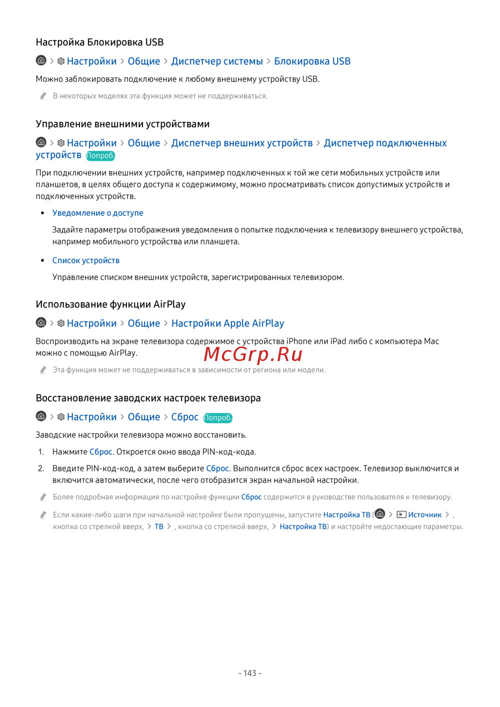 Samsung Neo QLED 4K Smart TV QE43QN90BAU — настройка блокировки USB и управление внешними устройствами [143/264]