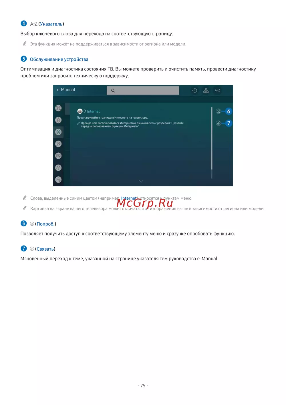 - Вы можете диагностировать проблемы в работе телевизора и службы smart hub и пользоваться функциями восстановления p.203