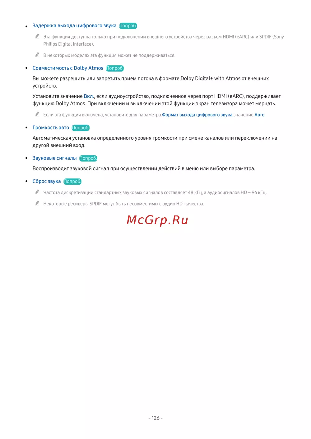 Samsung Neo QLED 4K Smart TV QE85QN90BAU — настройки цифрового звука: задержка, совместимость и громкость [126/264]