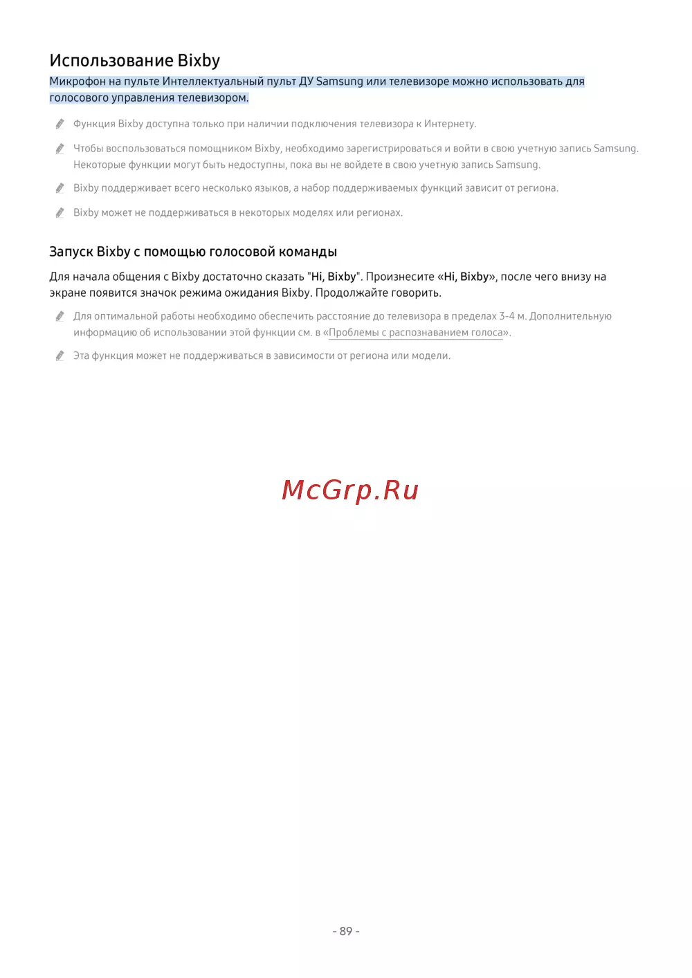 - Для использования функции bixby телевизор должен быть подключен в интернету кроме того вам понадобится микрофон на пульте интеллектуальный пульт ду samsung p.264