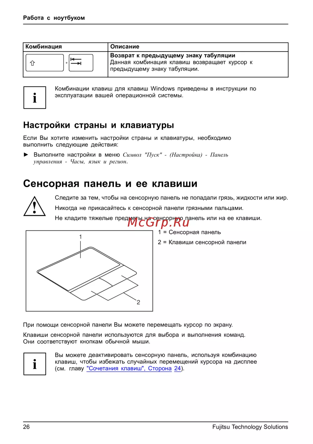 Fujitsu NH532 NH532MPZH2RU [30/86] Сенсорная панель и ее клавиши