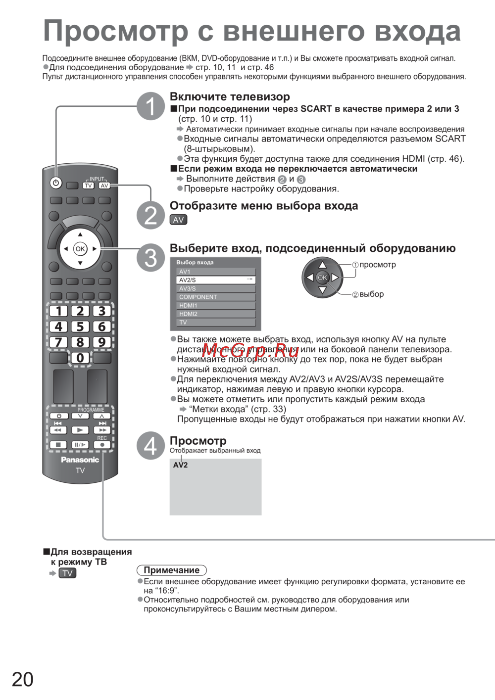 Вы также можете выбрать вход, используя кнопку AV на пульте●