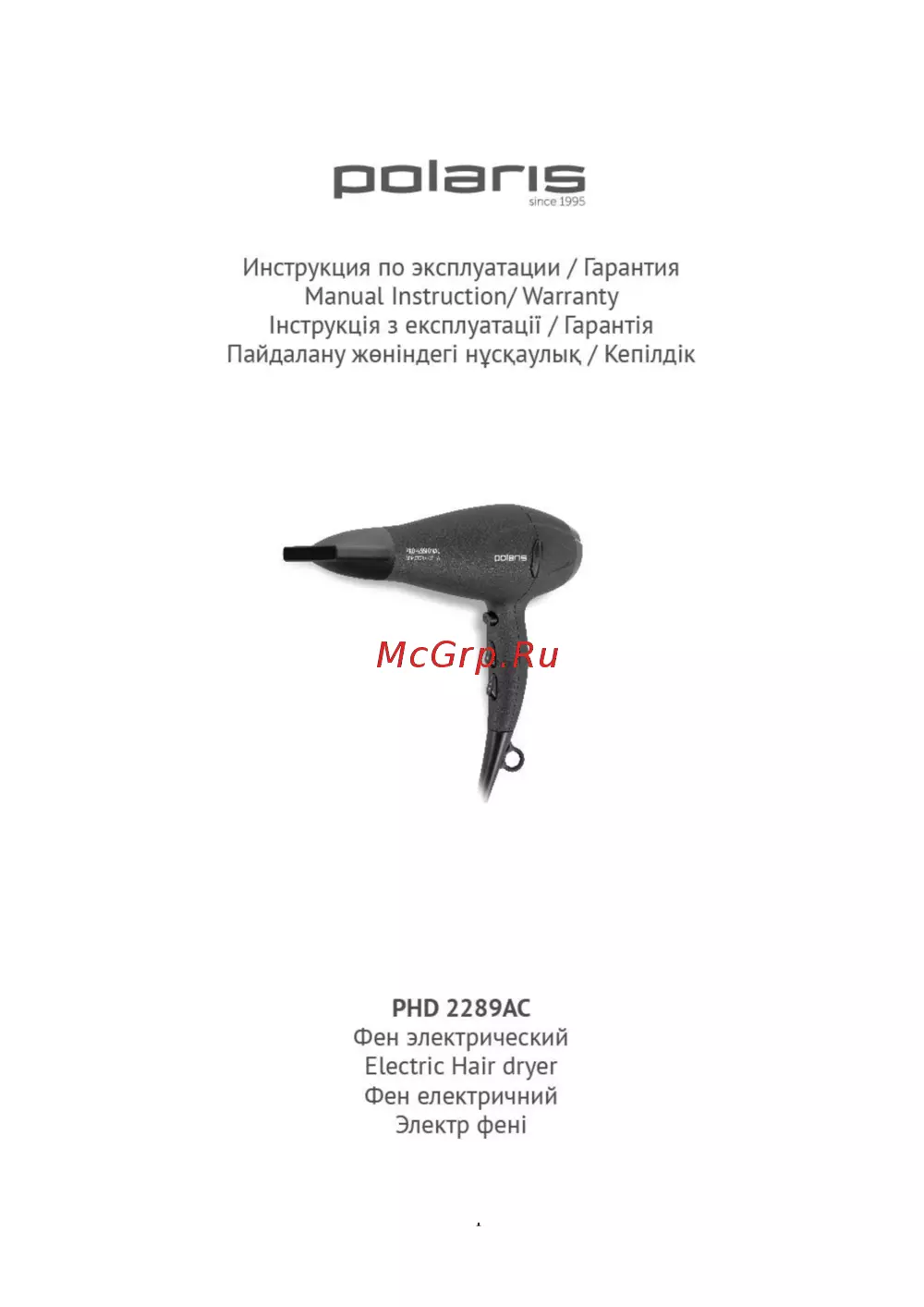 Polaris PHD 2290Ti Tourmaline PROFИнструкция по эксплуатации