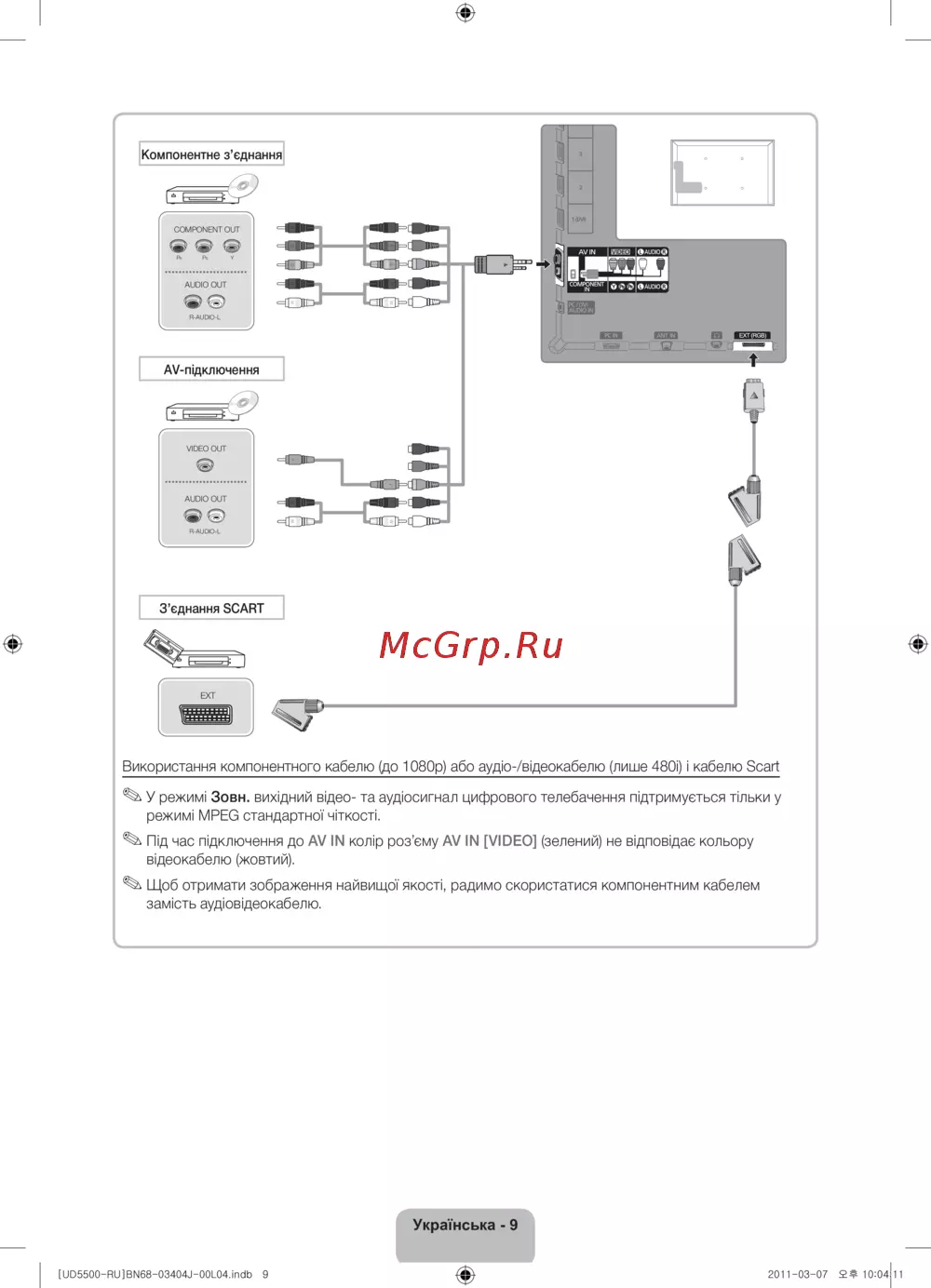 Щоб отримати зображення найвищої якості, радимо скористатися компонентним кабелем