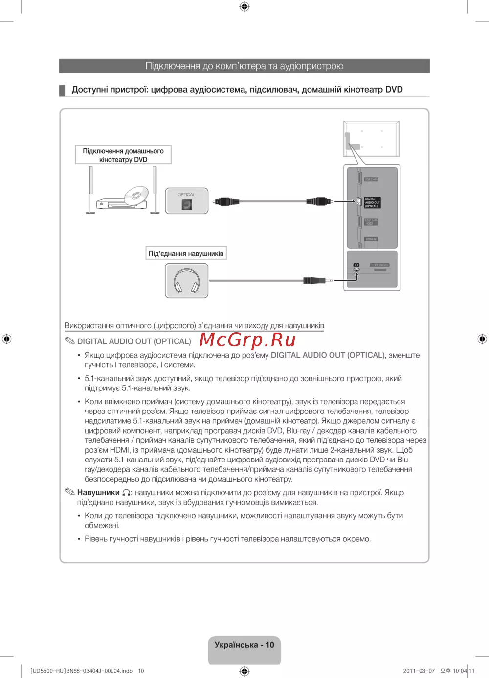 Використання оптичного (цифрового) з’єднання чи виходу для навушників