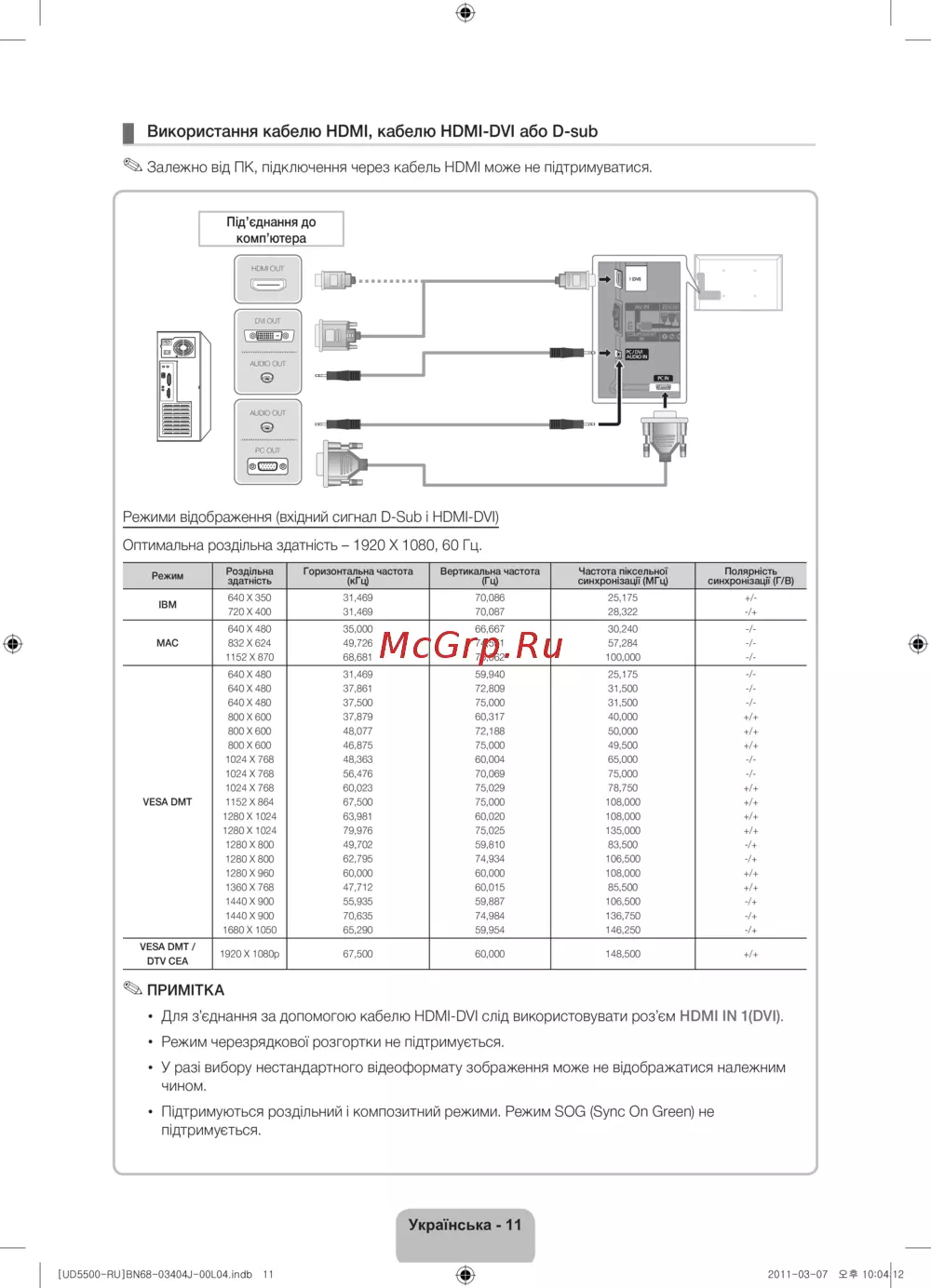 Режими відображення (вхідний сигнал D-Sub і HDMI-DVI)