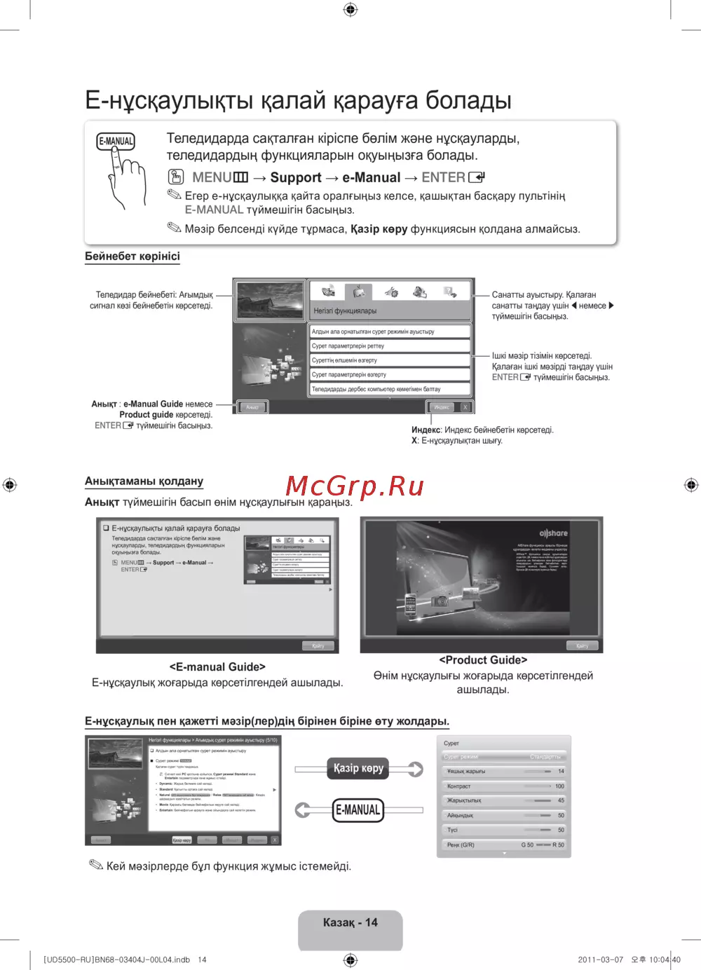 - Е нұсқаулықты қолдануға қатысты толық ақпарат алу үшін p 14 p.62