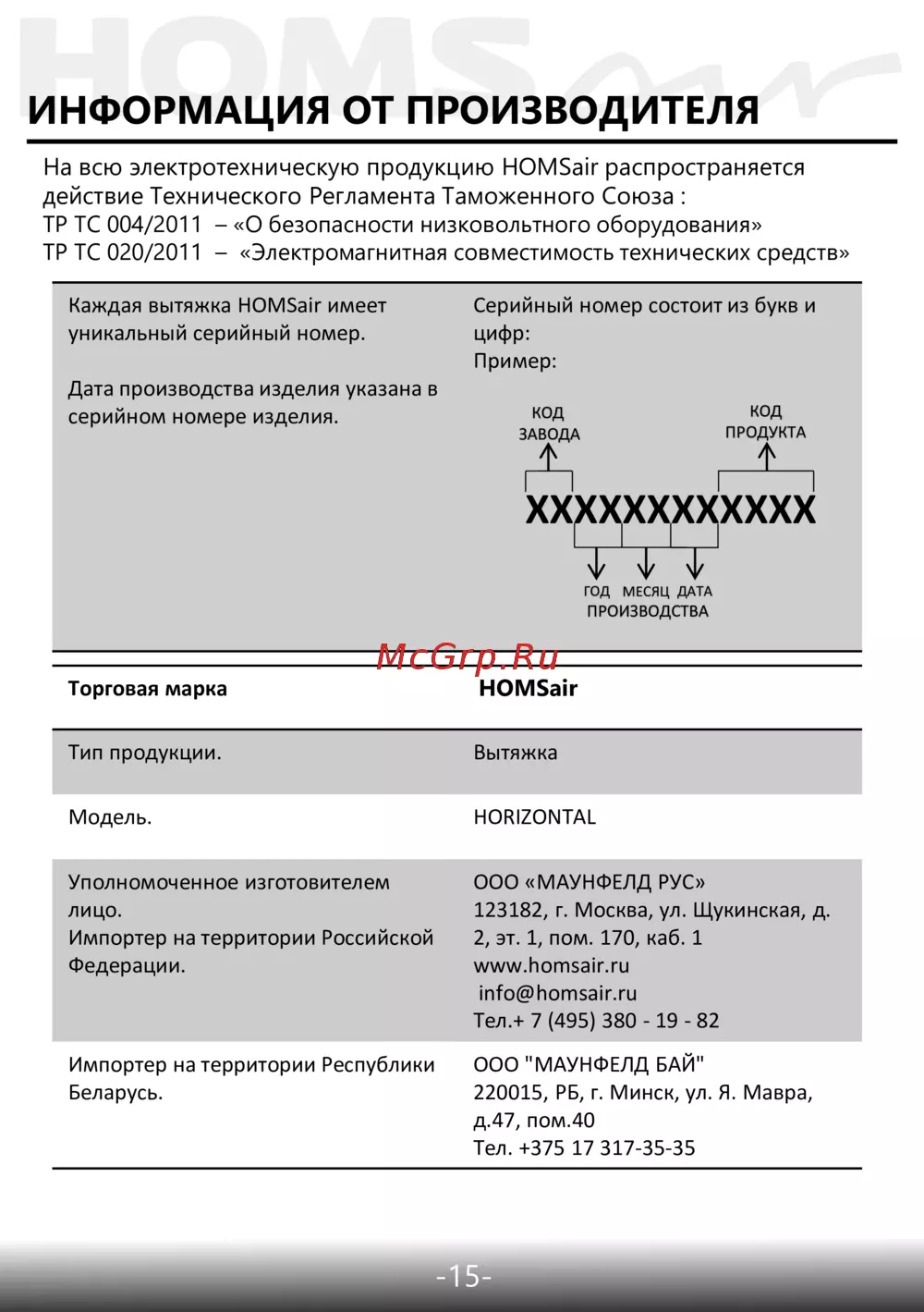 ![Homsair Horizontal 50 Inox [14/15] На всю электротехническую продукцию homsair распространяется действие технического регламента таможенного союза](/views2/1857102/page14/bge.png)