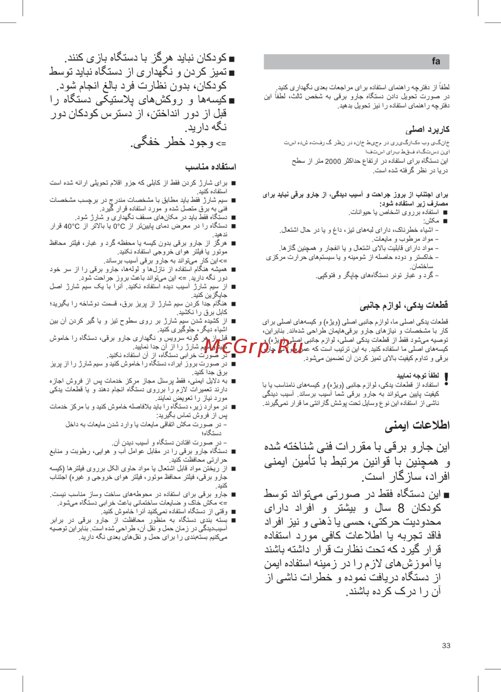 - The appliance may be used by children over the age of 8 years and by persons with reduced physical sensory or mental capacity or by per sons with a lack of experi ence or knowledge if they are supervised or have been inst ructed on the safe use of the appliance and have under stood the potential dangers of using the appliance p.6