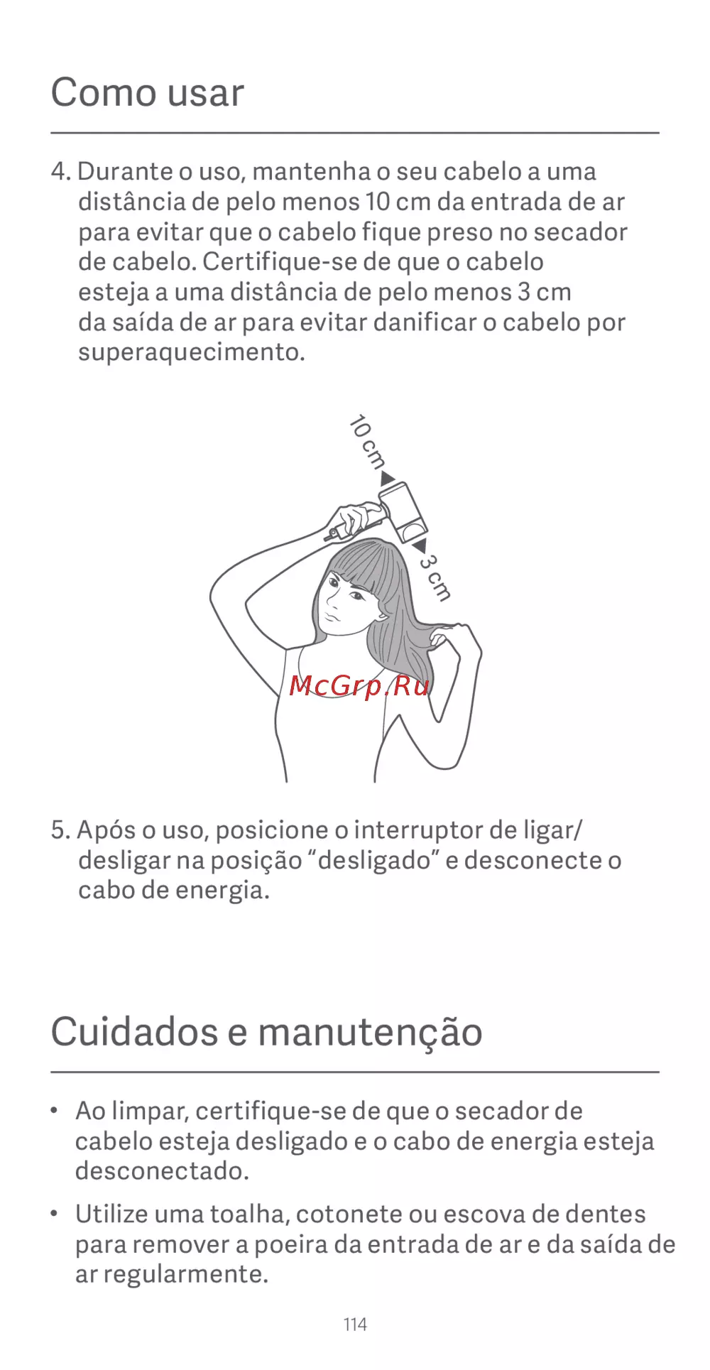 4. Durante o uso, mantenha o seu cabelo a uma