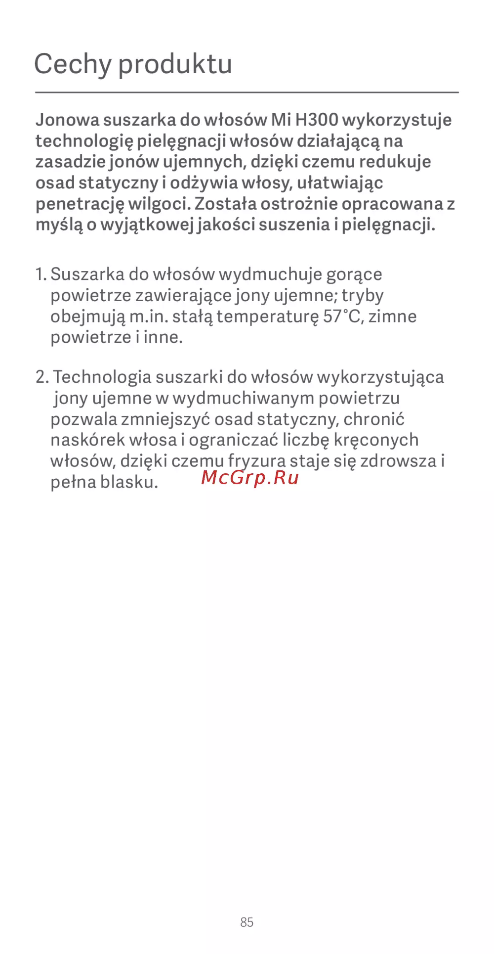 - Nazwa jonowa suszarka do włosów mi h300 p.92