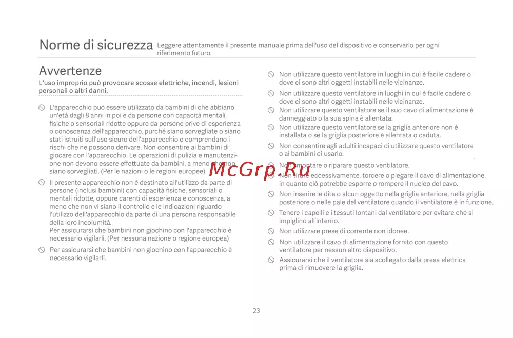 Non consentire agli adulti incapaci di utilizzare questo ventilatore