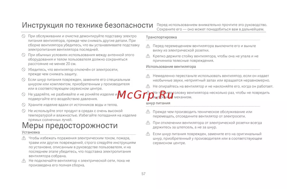 Перед использованием вентилятора внимательно ознакомьтесь с инструкцией. Следуйте мерам предосторожности, чтобы избежать травм и повреждений. Правильная установка и уход обеспечат долгую службу устройства.