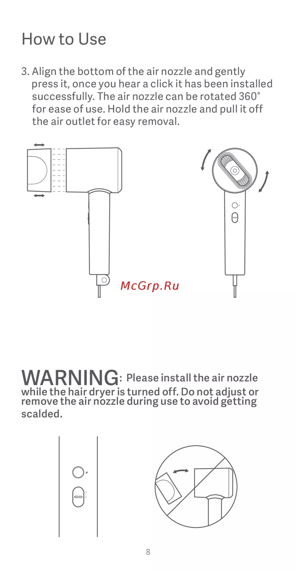 - Item dimensions 135 77 215 mm including air nozzle p.12