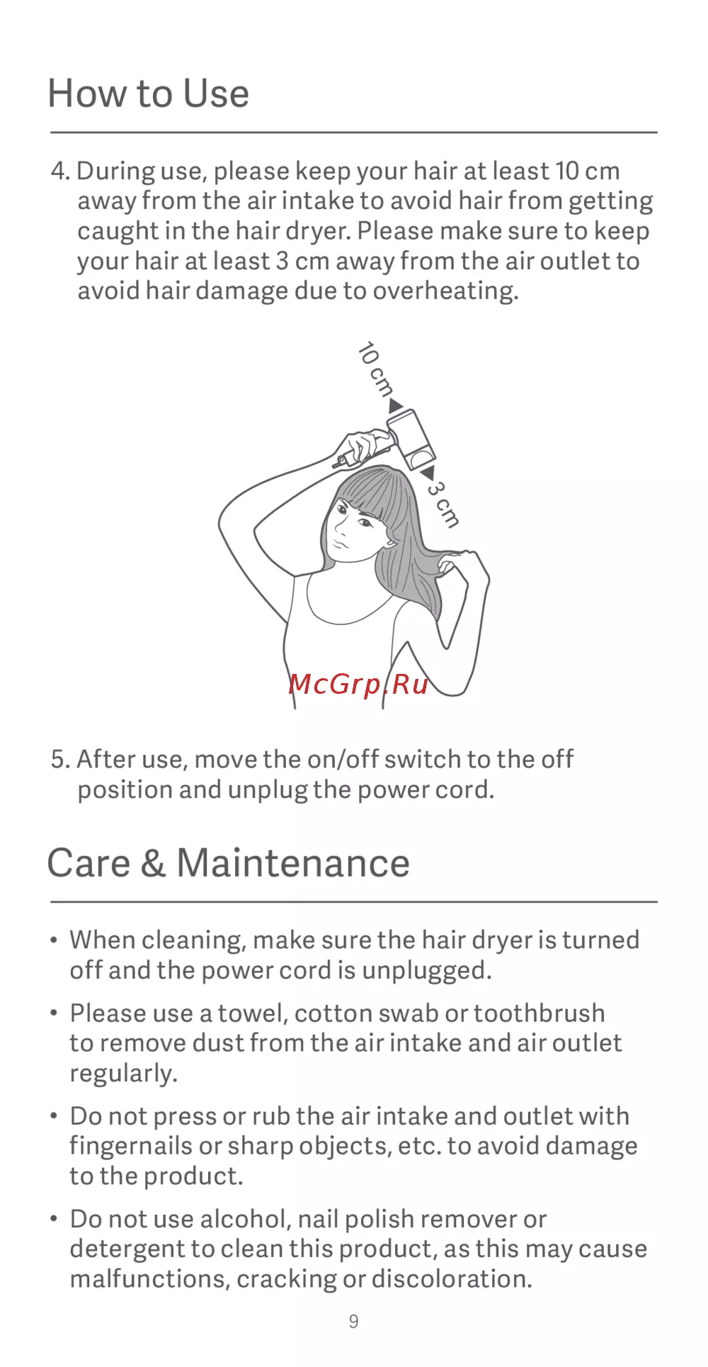 - Item dimensions 135 77 215 mm including air nozzle p.12