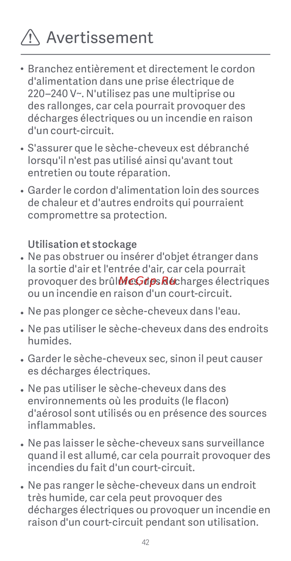 Ne pas plonger ce sèche-cheveux dans l'eau.